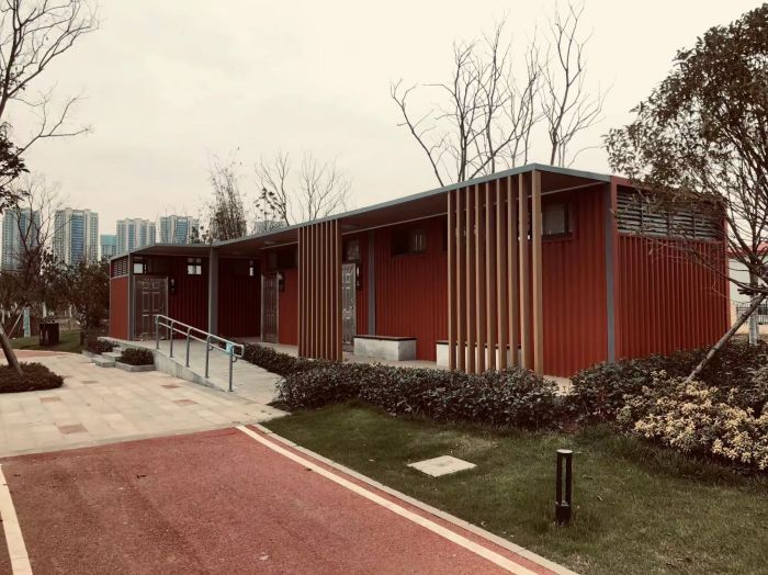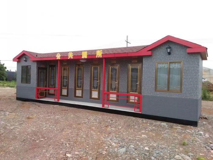 拼裝廁所;在廠里做好各個廁所部件,再到現場組裝在一齊,適合不易運輸的大型廁所。這座箱式廁所,女廁5個蹲位內配工具間,男廁2個蹲位+2小便斗,第三衛(wèi)生間由殘疾馬桶、助力洗手盆和兒童馬桶、兒童洗手盆外加嬰兒臺等設施。廁所前后有窗,通風采光,前部走廊裝有屋檐,防雨防曬。此廁所位于公路綠道邊,整體大氣,功能齊全,造型美觀,是一道難得的靚麗景觀!