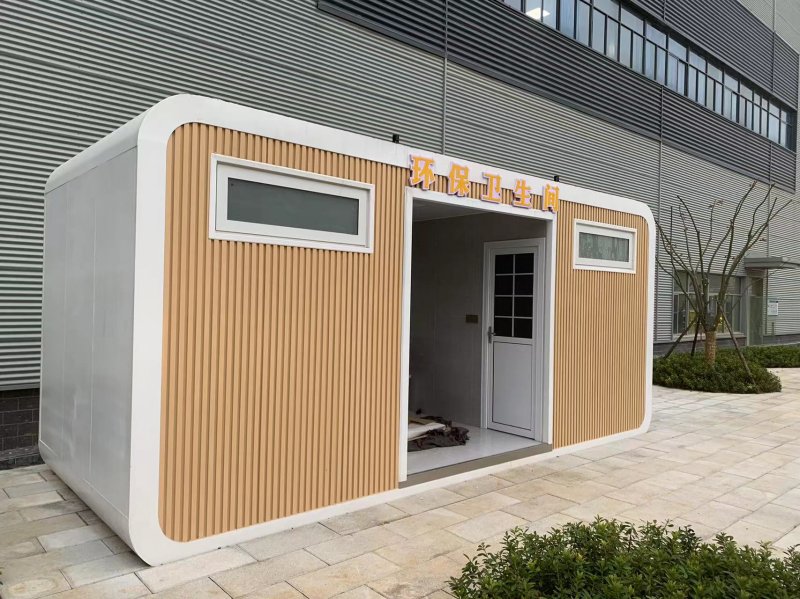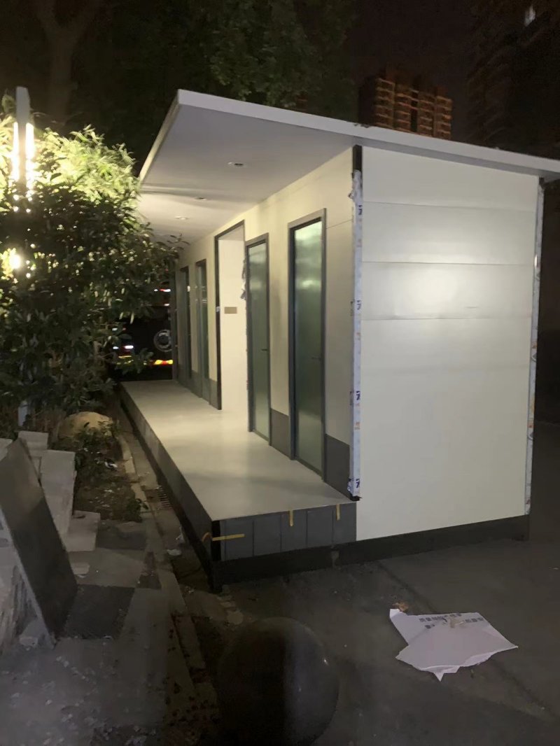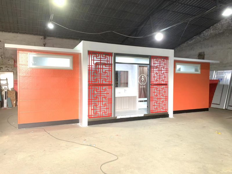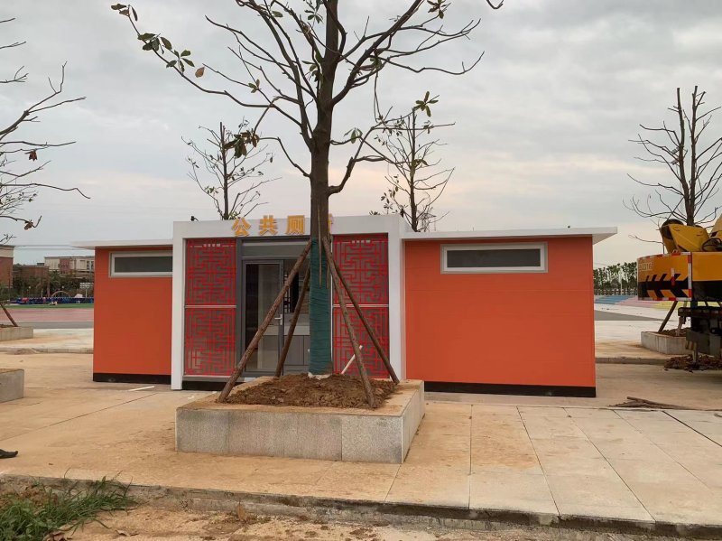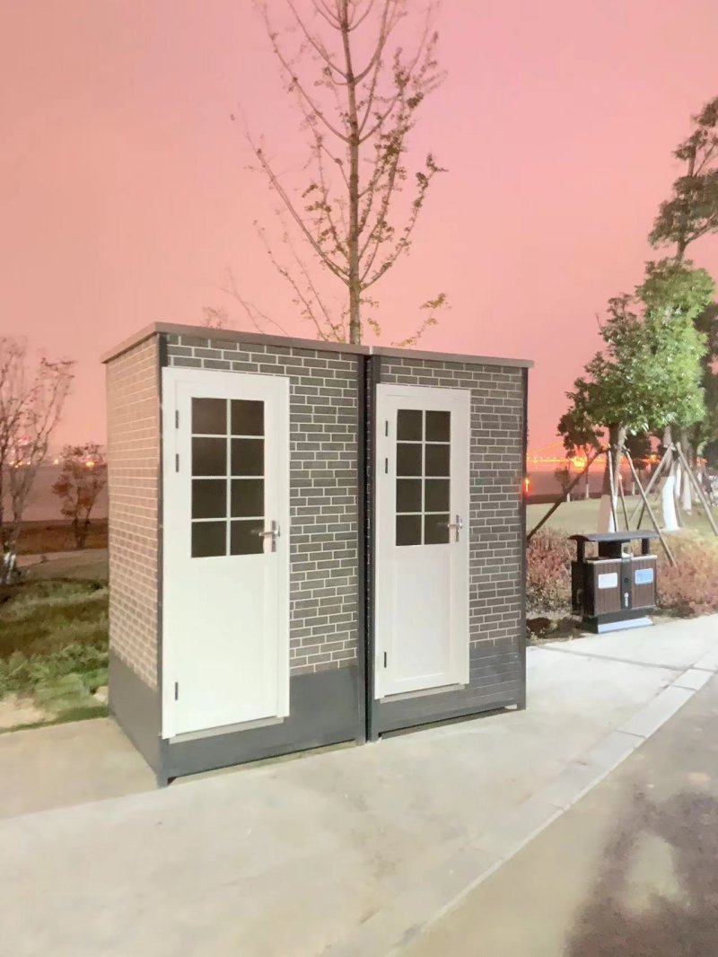 拼裝廁所;在廠里做好各個廁所部件,再到現場組裝在一齊,適合不易運輸的大型廁所。這座箱式廁所,女廁5個蹲位內配工具間,男廁2個蹲位+2小便斗,第三衛(wèi)生間由殘疾馬桶、助力洗手盆和兒童馬桶、兒童洗手盆外加嬰兒臺等設施。廁所前后有窗,通風采光,前部走廊裝有屋檐,防雨防曬。此廁所位于公路綠道邊,整體大氣,功能齊全,造型美觀,是一道難得的靚麗景觀!